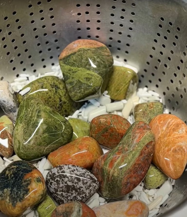 Finally I rinse off the rocks and media and add a tbsp of borax and a few drops of dish soap and tumble for a couple hour